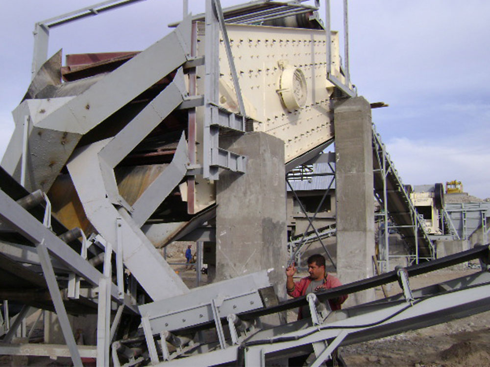Transporte y Trituración del Material: El material proveniente de la trituración gruesa se transporta mediante cintas transportadoras a las trituradoras cónicas para su trituración media y fina. Mediante el principio de trituración por compresión en capas, las trituradoras cónicas reducen el material a ≤60 mm mediante rotación y compresión cónica. En una planta de arena de granito de tamaño mediano, la trituradora cónica procesa de 200 a 300 toneladas de material triturado grueso por hora, lo que produce aproximadamente de 180 a 270 toneladas de producto triturado medio-fino.